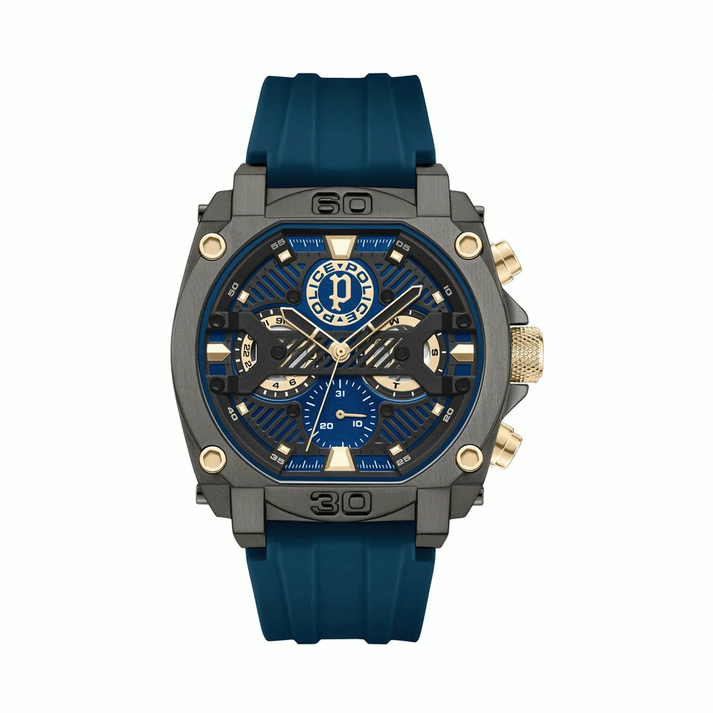 Muški sat Police PEWGQ0040001 iz linije „Norwood” brenda POLICE donosi snažan muški sat koji kombinira moderni urbani dizajn s kvalitetnim materijalima i funkcionalnošću. Kućište je izrađeno od nehrđajućeg čelika i ima promjer oko 45 mm. Brojčanik je označen kao višebojan („multicolor”) što daje modelu vizualnu dinamiku. Remen je izrađen od plavog silikona, što doprinosi udobnosti nošenja i modernom izgledu.