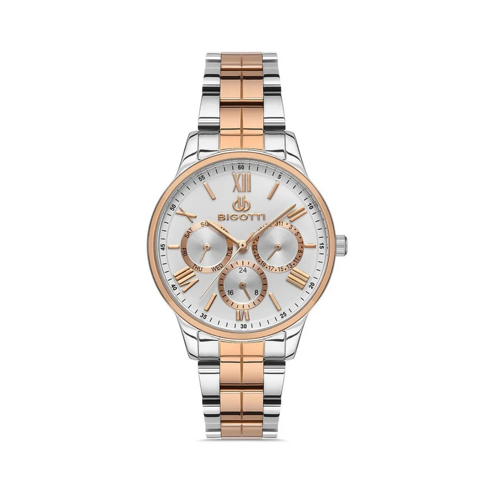 Model BG.1.10393-3 izrađen je za žene koje žele spoj sofisticiranosti i svakodnevne upotrebljivosti. Kućište i narukvica su metalni, izvedeni u bicolor kombinaciji (srebro i rozo-zlatna), što daje sat-nakit karakter i čini ga vizualno privlačnim.